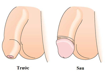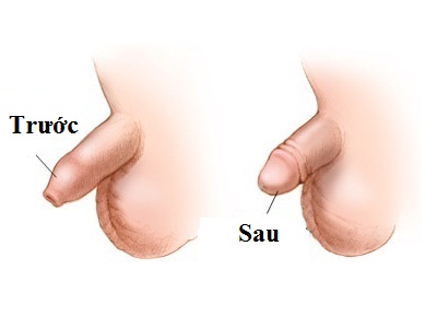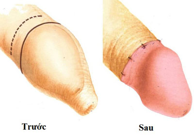 Hình ảnh dương vật trước và sau khi cắt bao quy đầu.